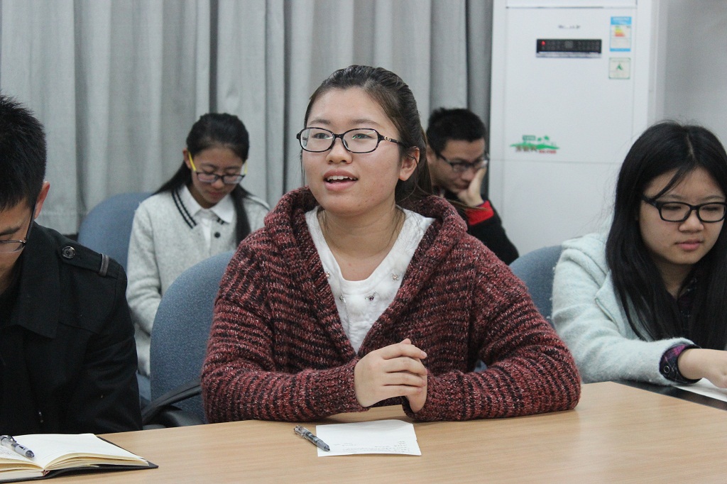 在交流环节,文法学院学生会主席杨帆说:“作为青年学生我们应当提高自己的政治素养,用正能量、爱国精神武装学生组织,努力践行社会核心价值观。”崔公达说:“今天大学生的思想关乎国家明天的发展,我们会以身作则,关心国家政治,并且将会议精神传递给身边的同学。”参会同学积极踊跃发言,并表示将进一步深入学习和领会会议精神,为学校和国家发展贡献自己的力量。