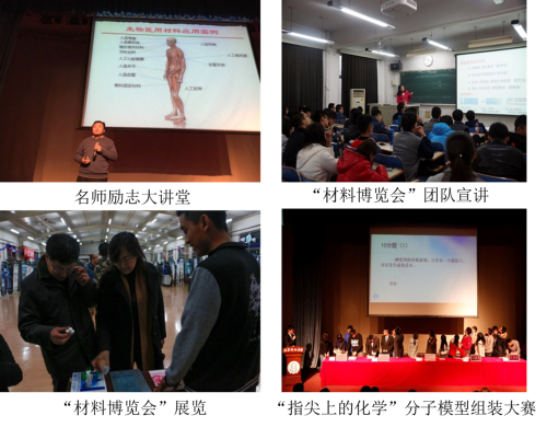 为促进学生对专业的认识和了解,学院开展了课上与课下结合,讲授与展示结合,动脑与动手结合的专业系列教育活动,旨在通过这些活动开展,全方位、立体化的促进学生对于专业的理解和认识。邀请长江学者、杰青徐福建教授开展名师励志报告,提升了同学们的专业自豪感和自信心;第四届“材料博览会”包括宣讲和展览环节,在宣讲环节,邀请各专业老师、研究生21人对专业和科研团队进行介绍,加深了同学们对于专业的全面了解,在展览环节,通过代表学院科研成果的实物展品60余件和宣传展板100余块,同学们能够更加直观地近距离了解材料专业;第三届北京高校“指尖上的化学”分子模型组装大赛决赛吸引了来自北京航空航天大学、北京理工大学、北京科技大学、北京林业大学、中国石油大学、北京化工大学六所高校参加,通过分子组装,动脑与动手相结合,促进同学们对材料专业的认识和喜爱。