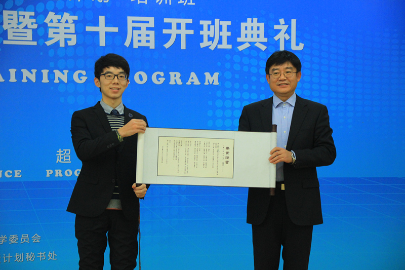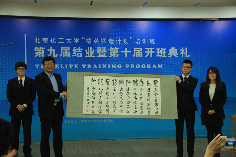 校长助理宋来新为第九届精英班学员颁发毕业卷轴,在十年长篇落上精英班的印章,并发表讲话。他首先对从祖国各地专程赶来参会的往届学员及亲友表示热情欢迎,并充分肯定精英班在十年发展过程中为我校创新人才培养工作做出的重大贡献。结合时代发展过程中对人才的需求特点,他希望学员们磨练意志,树立责任奉献意识;珍惜当下,树立终身学习意识;务实开拓,树立创新发展意识,切实成为践行社会主义核心价值观的青年先锋,努力在实现中华民族伟大复兴的“中国梦”的征程中展现化大学子的风采!