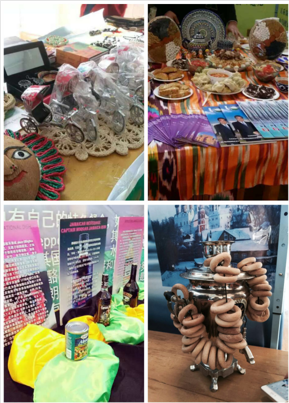 世界和平是各国人民最美好的愿景。本届国际文化展以从古到今世界各国同中国的友好往来为主线,展现世界和平,各国人民亲如一家的主题。来自五大洲的三十二个国家的不同肤色、语言和文化背景的留学生,精心准备了丰富的海报,书刊,国家特色美食,文化物品,穿着他们绚丽多彩的国家传统服饰,展示着世界各地的文化精粹,讲述各国之间的深厚友谊。沙特***的即兴歌舞,俄罗斯的彩衣飘飘,巴基斯坦的彩绘手花,英国的甜蜜蛋糕,巴西香气四溢的烤肉……绚烂的文化、风土人情和特色美食,吸引千余名师生前来参与。跨文化的亲密交流,引起在场师生的强烈共鸣。看展的过程中,领导们还关切地询问留学生的日常学习和生活情况。在开幕仪式上,土库曼斯坦留学生表演的舞蹈,帅气十足。来自非洲的留学生通过舞蹈展现他们的热情。中外学生合唱《This is Our Song》,将现场气氛点燃,表达了对世界各族人民共谱和平乐章的美好期许。之后到场的嘉宾共同为2015年北京化工大学十佳优秀留学生颁奖。