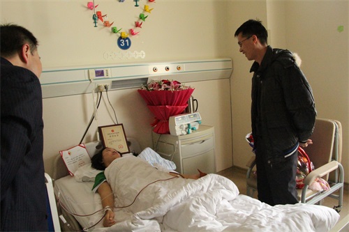 大家仔细询问了秦玉婷的身体状况,并叮嘱她要注意休息,保重身体。对秦玉婷的家人表示慰问,感谢她们对捐赠工作的理解和支持。同时也高度赞扬了秦玉婷延续患者生命的伟大义举和大爱无私、志愿奉献的宝贵精神,是践行社会主义核心价值观的垂范,是值得当代大学生学习的青春榜样。