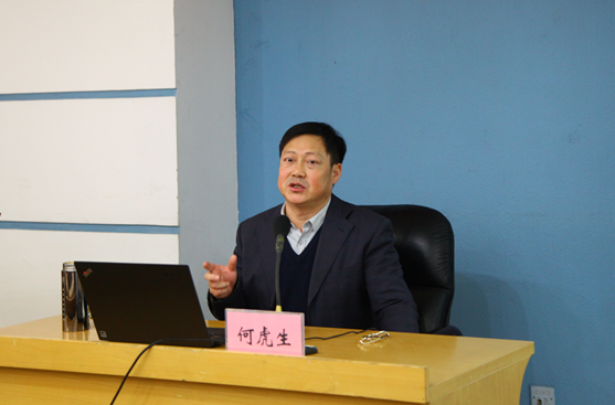 中国人民大学何虎生教授就十八届五中全会精神作专题报告。围绕十八届五中全会提出的新理念、新思想,何教授着重从三个方面对五中全会精神进行解读。一是十八届四中全会以来,在贯彻落实十八届四中全会精神、全面推行依法治国政策的同时,在县处级以上领导干部中普遍开展“三严三实”专题教育,进一步加强了党员作风建设,显示了党增强“四自”能力的政治清醒。二是“十三五”规划是“收官”规划,在当前发展的重要战略机遇期,它的提出对实现全面建成小康社会的目标尤为重要。他强调,要通过深化改革和主动创新来适应中国经济新常态,坚持稳中求进的总体基调,保持经济平稳健康增长。三是我们党要坚持党要管党,从严治党,切实改进工作作风,解决自身存在的突出问题。他强调,我们党要抓好理论学习培训,要进一步加强思想理论武装,保证全党思想统一、步调一致。