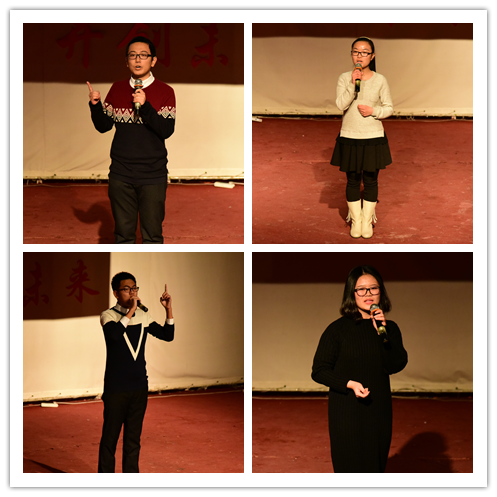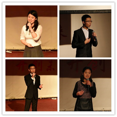 决赛分为主题演讲和即兴演讲两部分。在主题演讲中,10名参赛选手结合自身经历或身边故事进行深入创作,为全场观众带来了接地气、有心意的精彩演讲。高材1508王博文着眼校园实际状况《论北化学子的自我修养》,呼吁广大同学自觉遵守日常行为规范,做最优秀的北化人;材料1501杨春玲用儿时老师温暖自己的故事告诉我们,《小行动,也有大作用》;物流1502余彦洲强调了信仰对于当代大学生的重要作用,相信《在怀疑的时代我们依然需要信仰》;自控1502付佳鑫结合军训板报工作经历感悟出《因为信任,所以无畏》,给信任危机下的社会注入了一股强有力的暖流;机械1402佘诗怡传递了北化学子《为中华之崛起而读书》的坚定信念,尽显拳拳报国之心;国贸1403贾雅男结合自身点滴经历,在《抗战星火,薪火相传》中展现了当代青年的爱国力量;应化1504崔宇佳追忆中学时代同窗挚友的故事,那份《坚守小小的倔强》不禁令人动容;制药1505高腾分享《梦想不息,生命不已》的高三经历,希望大家不要荒废大学的宝贵光阴;装备1404李博闻希望同学们从身边小事做起,携手努力去《做一个善良的人》;英语1404黄昕怡深情讲述《戎装军旅,铿锵玫瑰》的我校退伍学生曹洋的军营生活,激励同学们以实际行动报效祖国。即兴演讲中,选手随机抽选主题词语进行演讲,大家敏锐深刻的见解赢得评委高度认可和观众阵阵掌声。
