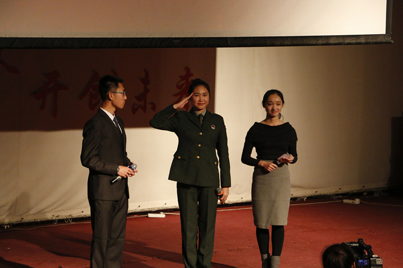 比赛期间,米鸥、丁文杰与张斯言三位嘉宾为现场观众带来了生动精彩的表演。米鸥老师和丁文杰老师合作朗诵气势磅礴的《青春中国》,震撼着每位观众的心灵,引来如潮掌声。张斯言老师带来寓言诗《海燕戒》,他沧桑的声音和真情流露地表演,令全场观众动容,也让大家懂得了即便是天生就是海燕,也只有经历了暴风雨的洗礼,才能自由飞翔在大海上空。根据征文优秀作品改编的情景剧《你,愿意吗?》,诠释了北化学子无悔志愿奉献与立志投身军营的青春风采,演员们的深情演出博得了观众们的阵阵掌声。在退伍女兵曹洋的访谈中,她为大家讲述了成为三军仪仗队首批仪仗女兵背后不为人知的青春故事,诠释了当代大学生最有力的爱国方式。