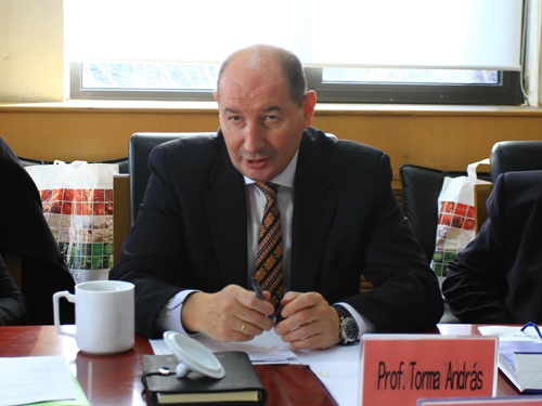 米什科尔茨大学Torma András校长答欢迎词,向与会成员介绍匈牙利和米什科尔茨大学目前的教育情况,并就两校如何在加强学生交流方面与理事会成员交换了意见。Torma校长表示,对两校进一步合作和孔子学院建设充满信心,并希望能够为孔院发展和两校与万华集团的深入合作发挥更大作用。