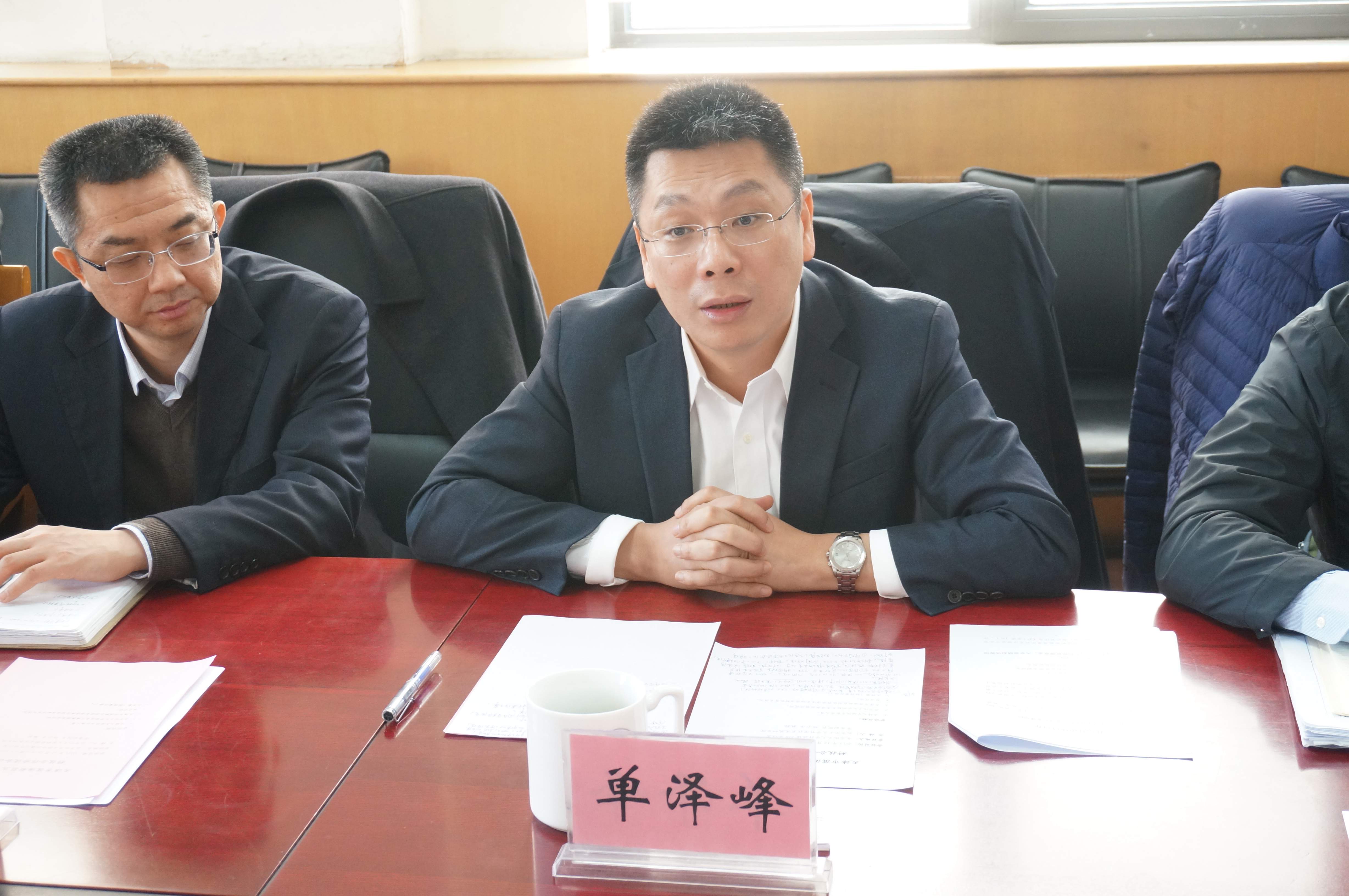 王峰副校长首先代表学校对单泽峰副区长一行来访我校表示热烈欢迎。他回顾了我校与天津市合作的历史渊源和合作成果,介绍了学校的基本情况,强调我校具有鲜明的大化工特色,坚持大开放战略,尤其是在化工安全等领域具有扎实的研究基础和坚实的工程化能力。他指出,滨海新区作为我校重要的战略合作伙伴,在科技成果中试基地建设及规模化扩大生产等领域具有独特优势,通过双方深入的科技交流与合作,可以共同分享优势资源,搭建科技合作平台,为实现国家科技创新驱动发展做出贡献。