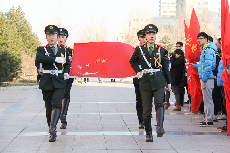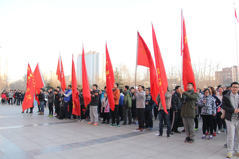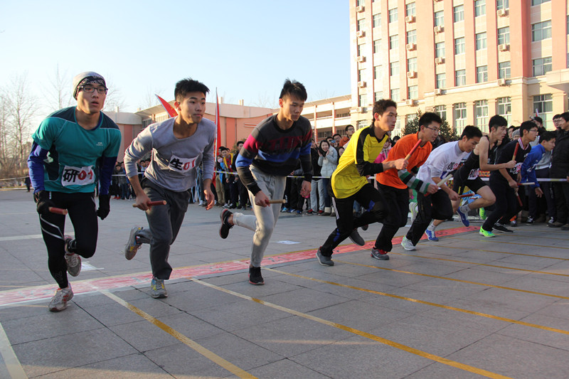 下午3点,长跑活动在北校区礼仪广场正式开始。伴随着激昂有力的国歌,我校国旗护卫队举行了庄严的出旗仪式。北区办主任白守礼老师为活动致辞。他指出,举办纪念“一二·九”长跑活动是为了让青年学子铭记历史,珍惜当下生活,思考历史使命,培养广大同学的爱国情操和报国之志。他希望同学们勇于拼搏、超越自我,以长跑活动为契机,积极参与到群众性课外体育锻炼活动中去,用强健的体魄为实现伟大中国梦贡献力量。随后,于洪杰老师向各学院辅导员授旗。辅导员们在欢呼与掌声中绕比赛路线领跑一圈。杨明老师为长跑接力比赛鸣枪,比赛正式开始。