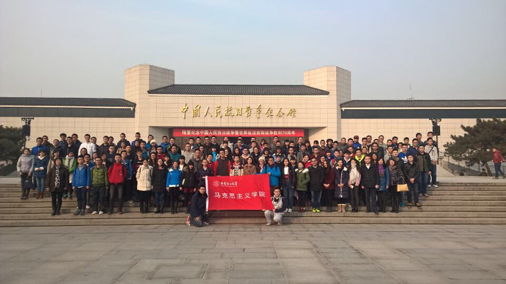 2015年12月6日下午,“中国近现代史纲要”课程组教师张丽荣、王美玉、彭拴莲、何树远以及2015级辅导员郭醒、曲书豪、杨京带领150余名2015级的学生代表参观了中国人民抗日战争纪念馆。通过参观深深震撼了学子们的心灵,同学们由衷地表示不会忘记战争的苦难,不会忘记前人给我们留下的不朽精神支柱,将永远铭记历史,缅怀先烈,珍爱和平,开创未来,坚持中国共产党的领导,走中国特色社会主义道路,通过每一个中国人的努力,实现中华民族伟大复兴的中国梦。