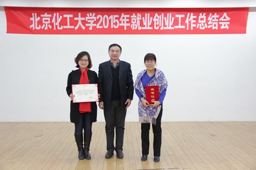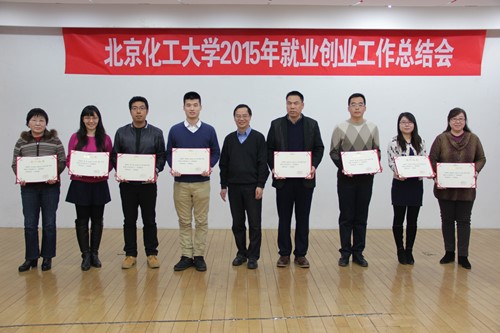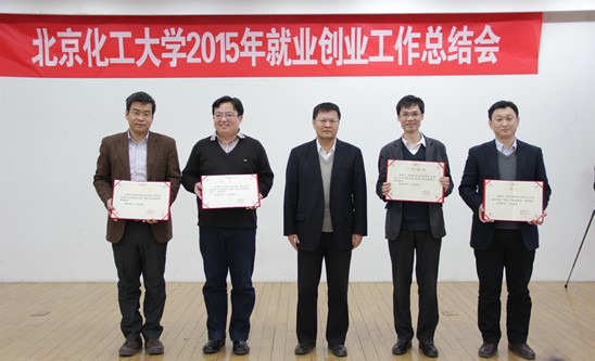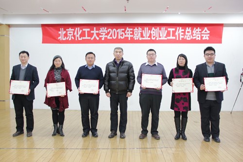 2016年1月20日下午,我校在会议中心多功能厅召开2015年就业创业工作总结会。校长谭天伟、副校长王贵、副校长任新钢、副校长李显扬、副校长王峰、总会计师查道林出席会议。相关职能部门和各学院领导、2015年就业工作获奖集体、突出贡献团队和先进个人等参加会议。会议由校长助理宋来新主持。