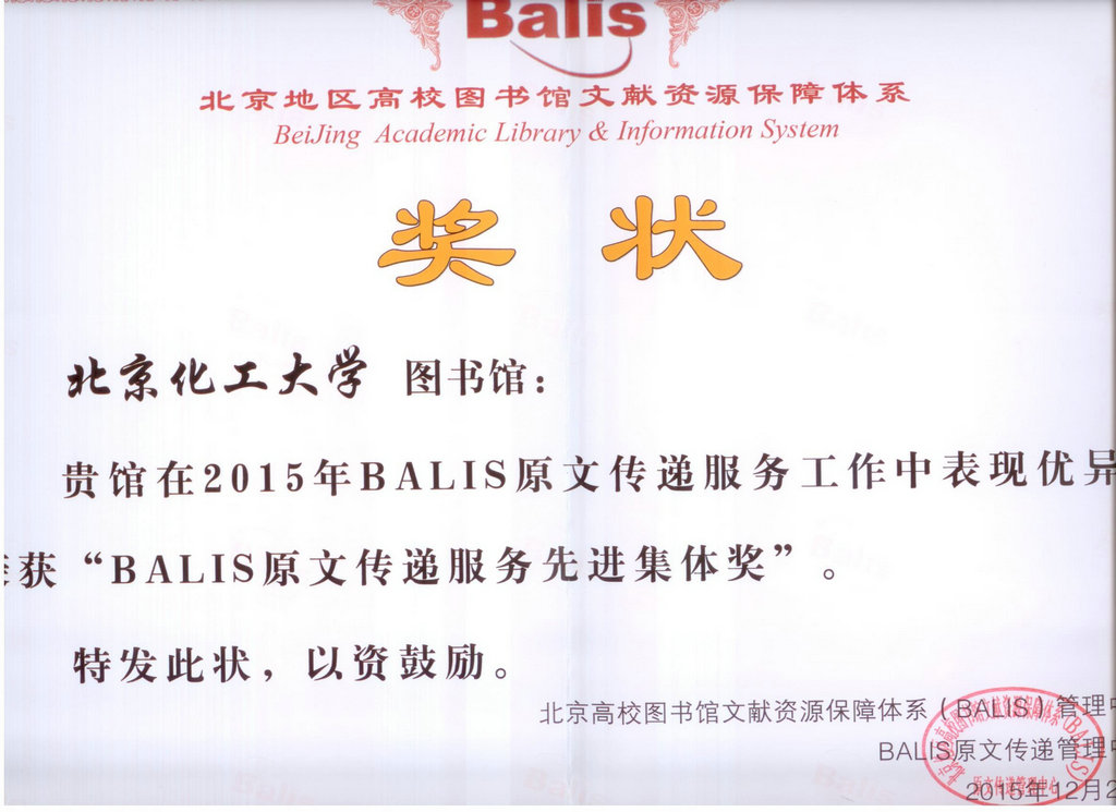 我校图书馆荣获2015年度馆际互借与文献传递工作一等奖