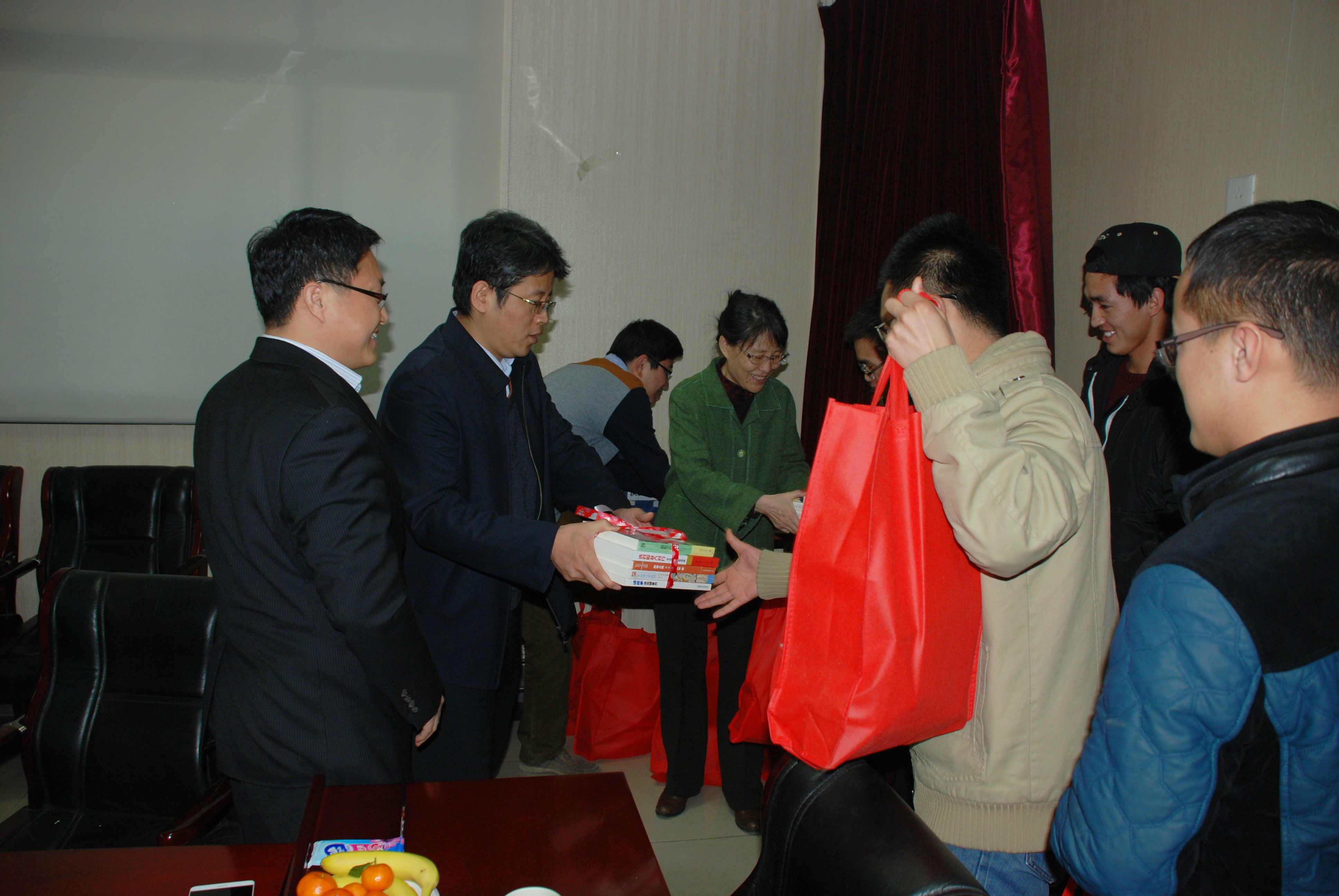 校长助理宋来新详细介绍了2016年我校寒假留校学生的整体情况及留校学生活动的工作安排。座谈会上,留校学生代表介绍了自己留校的原因及寒假的学习和生活安排,对寒假期间学校在各方面的保障和关怀工作表示了衷心的感谢,非常高兴学校安排了这么丰富多彩的活动,还表达了在校感受到了家的温暖的喜悦心情。随后,陈江华委员和王芳书记为同学们赠送图书、新春礼包和电话充值卡,勉励同学们在假期间珍惜时光,充实自己并和家人常联系。