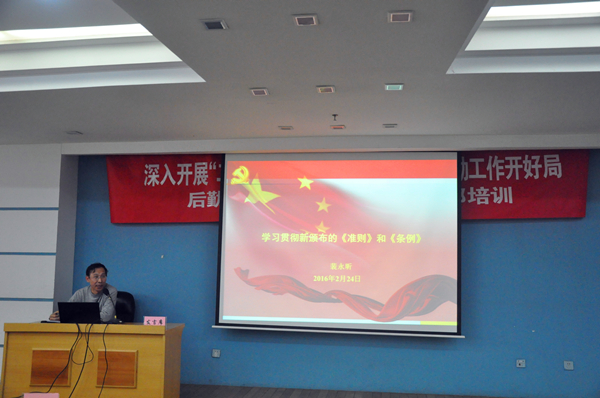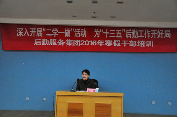2016年2月24日,后勤服务集团在中心会议室召开2016年寒假干部培训会。本次培训会主题为“深入开展‘二学一做’活动,为‘十三五’后勤工作开好局”,党委书记王芳、副校长王贵出席培训会。集团部门经理以上干部、全体党员和青年骨干参加了会议,会议由党总支书记裴永昕主持。
