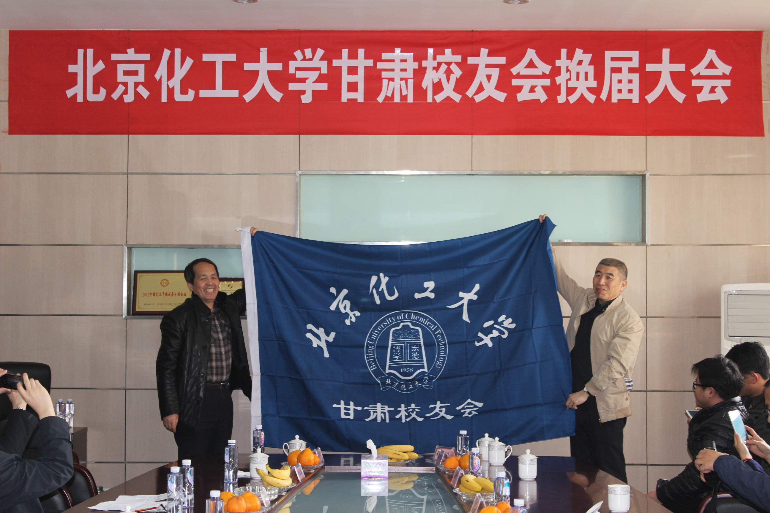 本次大会顺利完成北京化工大学甘肃校友会章程审议,并选举产生了新一届组织机构成员。大会一致推举孙中心为会长,柳玉海等六人为副会长;王新为秘书长,柳玉海、王磊、王德涛为副秘书长。李显扬副校长向甘肃校友会授旗。