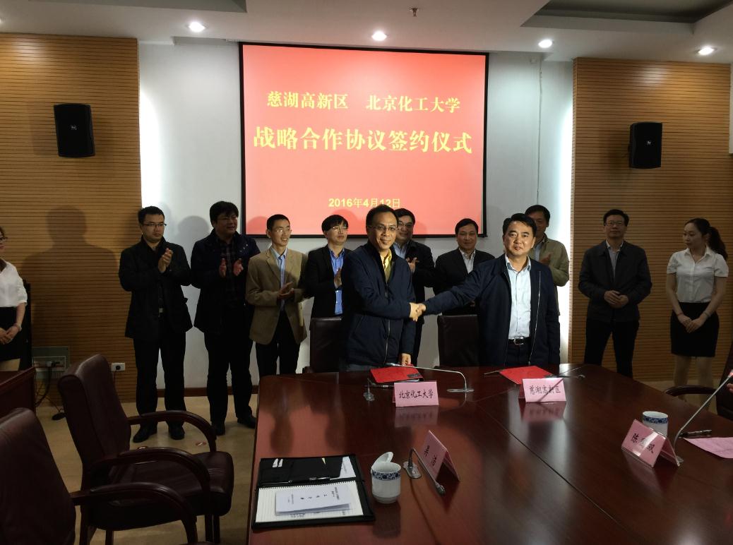 2016年4月12日,受马鞍山慈湖高新区管委会邀请,我校副校长陈标华带队访问安徽省马鞍山市,并与马鞍山慈湖高新区管委会签订战略合作协议。