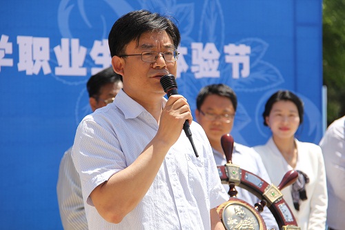 仪式上,学工办主任商云龙对“职业生涯体验节”的设计理念进行了介绍。“职业生涯体验节”是我校配合“第六届学业•职业规划大赛”隆重推出的职业生涯规划指导活动,其特点在于:采用“游戏式”教学方法,强化学生参与感,从低年级职业启蒙抓起,为高年级的职业规划课程做良好的兴趣导入。他希望每一位同学能在参与过程中让学业目标从笔头,落实到感知,让职业规划从设计,转变为行动。