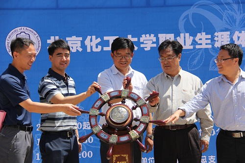 体验节正式启动,校长助理宋来新、学工办主任商云龙、北区办主任白守礼、学工办副主任付国柱、北区办副主任许利民共同转动领航舵,伴随着汽笛声起,标志着职业生涯认知规划之旅正式起航。