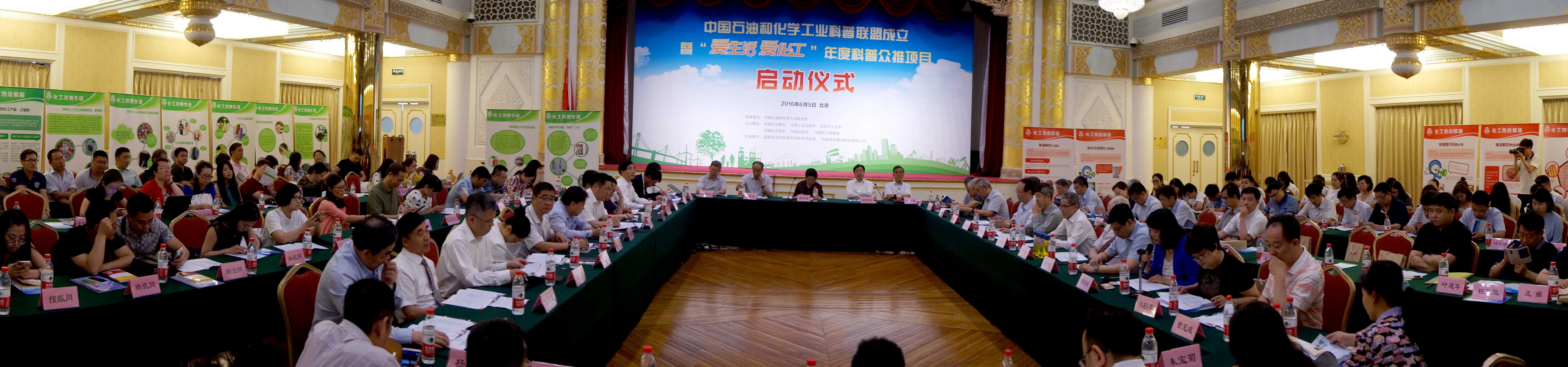 当今,石油和化学工业已成为中国制造业中对国民经济贡献率最高的产业之一,成为驱动社会文明进步的重要力量。为深入贯彻落实习近平总书记关于“科技创新、科学普及是实现创新发展的两翼,要把科学普及放在与科技创新同等重要的位置”的重要思想,在全社会形成“学化工、懂化工、用化工”的共识,培育“理解化工、尊重化工、从事化工”的氛围,构筑化工产业与社会的和谐关系,在2016年6月5日——世界环境日,由中国化工报社、北京化工大学、化学工业出版社、中国化工学会、中国化学会和中国化工博物馆等六家单位共同发起成立了公益性的行业科普组织——中国石油和化学工业科普联盟。第十届全国人大副委员长顾秀莲,中国石油和化学联合会三届理事会会长李勇武,中国石油和化学工业联合会会长李寿生,中国科协党组成员、书记处书记徐延豪,全国政协十届教科文卫体委员会副主任、中国科协原副主席徐善衍,我校师生以及来自工信部、环保部等政府部门,中国石油、中国石化、中国化工等企业,以及科技界、教育界、产业界、新闻媒体的百余名代表出席仪式。著名表演艺术家朱时茂为中国石油和化工科普联盟《“爱生活 爱化工”年度科普众推项目》代言。