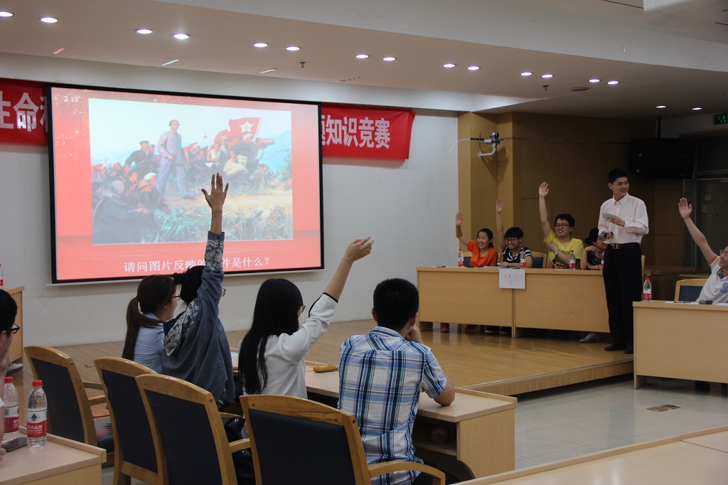 比赛开始,各代表队首先展示了自己独具特色的队名,并喊出了嘹亮的口号,鼓舞了士气,也点燃了现场观众的热情。本次知识竞赛共设有“牛刀小试”、“眼疾手快”、“观众互动”、“心有灵犀”、“逆流勇进”五个环节。在“牛刀小试”和“眼疾手快”环节,各代表队初试锋芒,表现不俗且势均力敌。可以看出参赛队员们有备而来。在观众互动环节,在场观众积极抢答将现场的气氛推向了**。在“心有灵犀”环节,选手们配合默契。最后,红色记忆队获得特等奖;而红四队凭借在最后一个环节“逆流勇进”中的精彩表现成功逆袭,最终荣获一等奖;星火队、中国梦队分获二、三等奖;红星闪闪队获得优秀奖。