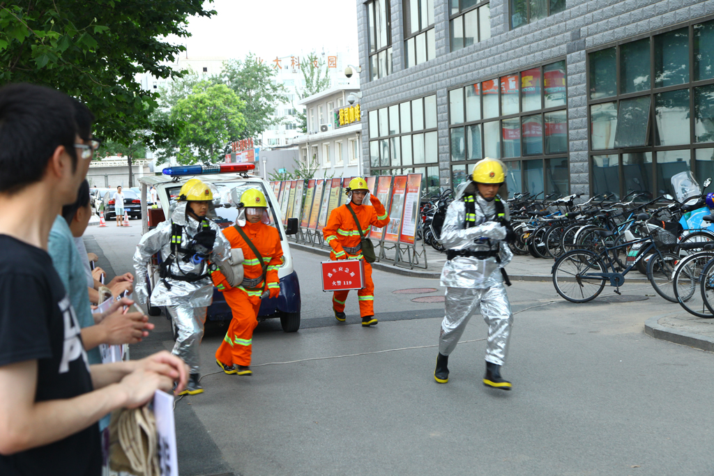 6月17日下午,我校在科技大厦广场举办北京化工大学微型消防站暨科技大厦消防演练。北京化工大学党委副书记兼纪委书记关昌峰、北京市公安局文保总队二大队副大队长张毅、亚运村消防中队指导员张国强、北京市公安局和平街派出所所长柴征勋、和平街街道办事处防火办主任王志钰、北京市公安局文保总队警官马亮、和平街派出所警官缪志伟、保卫处处长王小健、学工办主任商云龙、后勤服务集团总经理赵恩平、保卫处副处长杨明、黄晓一和各学院行政副院长、安全工作负责人、各相关职能部门负责人出席。安全演练由保卫处副处长姚望主持。各学院学生代表参与了此次消防安全综合演练活动。