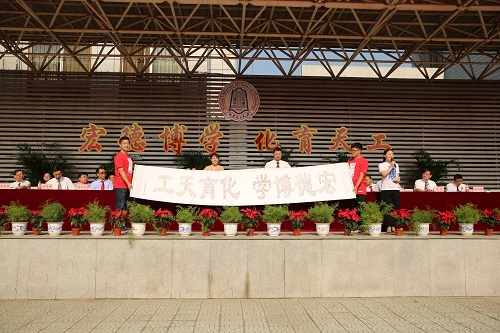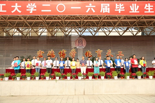 全体2016届毕业生庄严宣誓:“精诚奉献、务实创新,自强不息、激流勇进,珍惜韶华、奋发有为。为母校增光、为祖国添彩。”