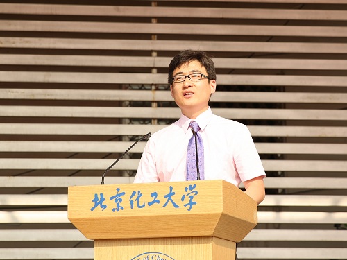 中国工程院院士、校长谭天伟教授以《坚持人生选择 成就青春梦想》为题寄语2016届全体毕业生。谭校长首先代表学校向勤学奋进、勇攀高峰的毕业生们表示祝贺,他用精准的数据列举了四年间学校实现的跨越式发展,耐心讲述了中外名家的典型事例,叮嘱同学们“志存高远,锲而不舍;终身学习,精益求精;矢志不渝,知行合一”,培养自己精益求精、一丝不苟、专注耐心的“工匠精神”,时刻做到“人无我有,人有我精”。他深情地说:“不要忘记地铁五号线‘和平西桥站’是曾经回家的路,也不要删掉网购地址薄中的‘北三环东路15号’,这些印迹会时刻提醒着你们曾经的青春岁月在这里存在。”赢得了全体毕业生经久不息的掌声。