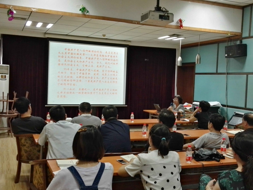 大会首先由我校马克思主义学院刘玲老师给校办产业全体党员上党课。刘玲老师授课的主题是:引领我们的伟大旗帜——坚持党在指导思想上的与时俱进。主要内容有:一是政党与中国共产党的指导思想;二是中国共产党思想的主要内涵;三是中国共产党对马克思主义指导思想的正确选择。刘老师深入浅出的讲解了党的指导思想的形成、发展过程和成果,让大家体会到了党在追求真理的路上勇敢无畏和与时俱进的精神,使大家对党的指导思想有了更加深刻地认识。