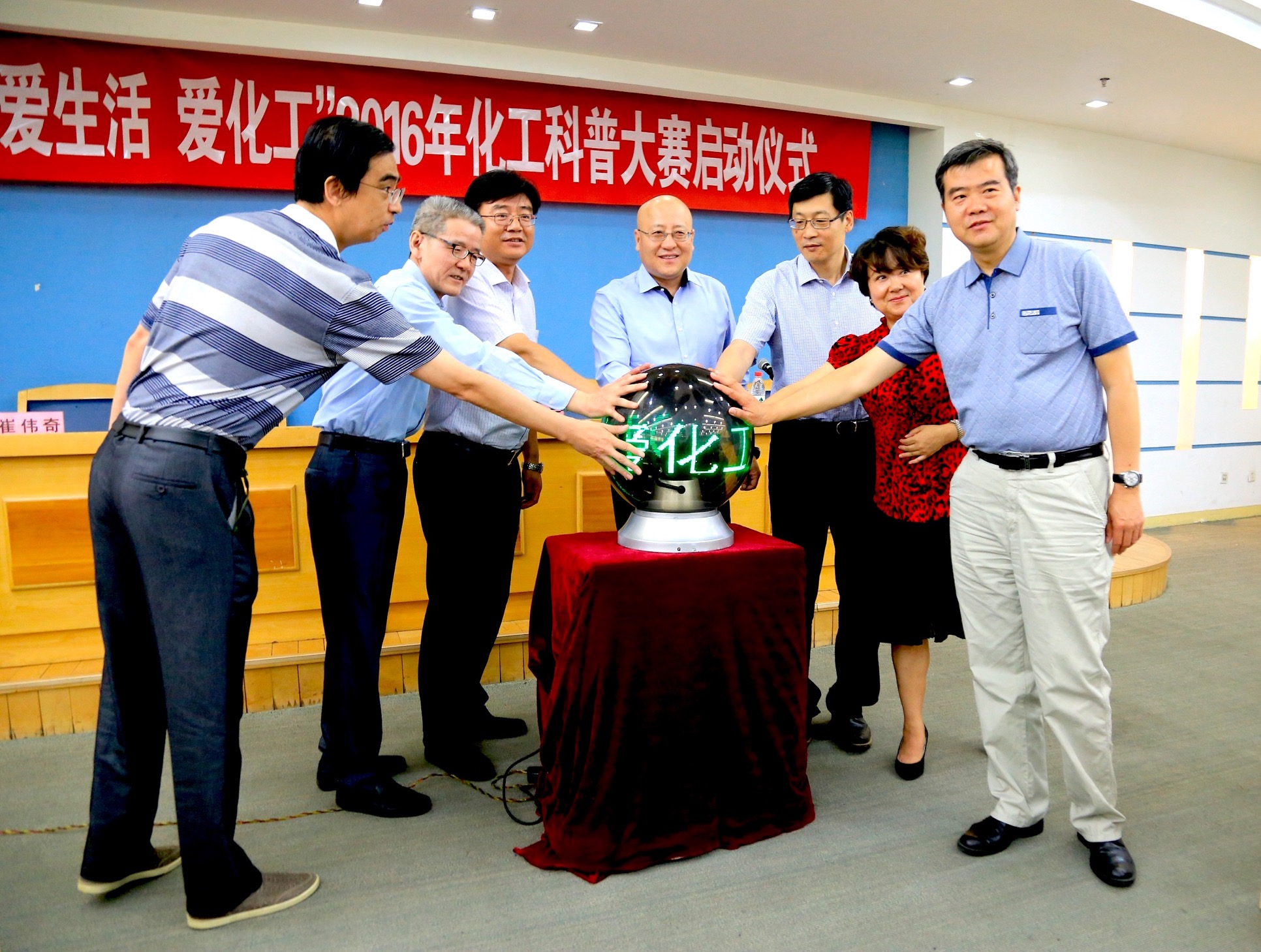 校科学技术发展研究院副院长崔伟奇教授在会上介绍了本次化工科普大赛的活动安排,并鼓励同学们踊跃报名,运用专业知识与聪明才智创造出独具特色的优秀作品。随后,与会嘉宾共同开启水晶球,正式揭开了本次化工科普大赛的序幕。