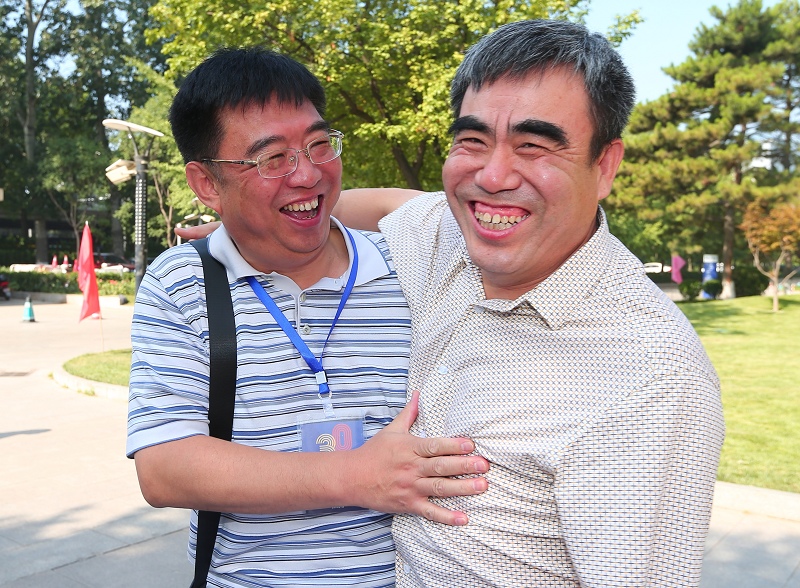 洪光日话不多,但是脸上始终挂着和蔼的微笑。这位朝鲜族校友当年的普通话水平可不像现在这么标准。因为这个原因,在他身上流传着一个让同学们笑了三十年的笑话。“那时候没来过北京,学校安排了专车,但唯独忘了我,我就自己走了一天。当时一进学校,就有一个辅导员叫我提意见(其实说的是去体检),我想啊,虽然很不开心,但是也不能表现出来啊,我就大声喊:没意见!然后头也不回地走了。第二天,老师找我谈话:洪光日,昨天叫你去体检,你咋跑了?”周围的校友依然笑得喘不过气来。当年也是这样笑,现在也是这样笑,只不过要扶着身边的树。他们当年脚下的树苗,现在已经枝繁叶茂,足够把条幅挂在树冠上:回到青春的地方。他们看了看,挺直了身板,要像年轻人一样笑。