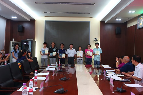 谭天伟校长为准新生代表颁发录取通知书