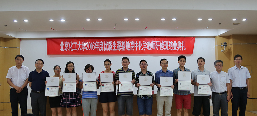 最后,主席台领导为全体学员颁发了结业证书并合影留念。为期一周的2016年度优质生源基地高中化学教师研修班圆满结束。