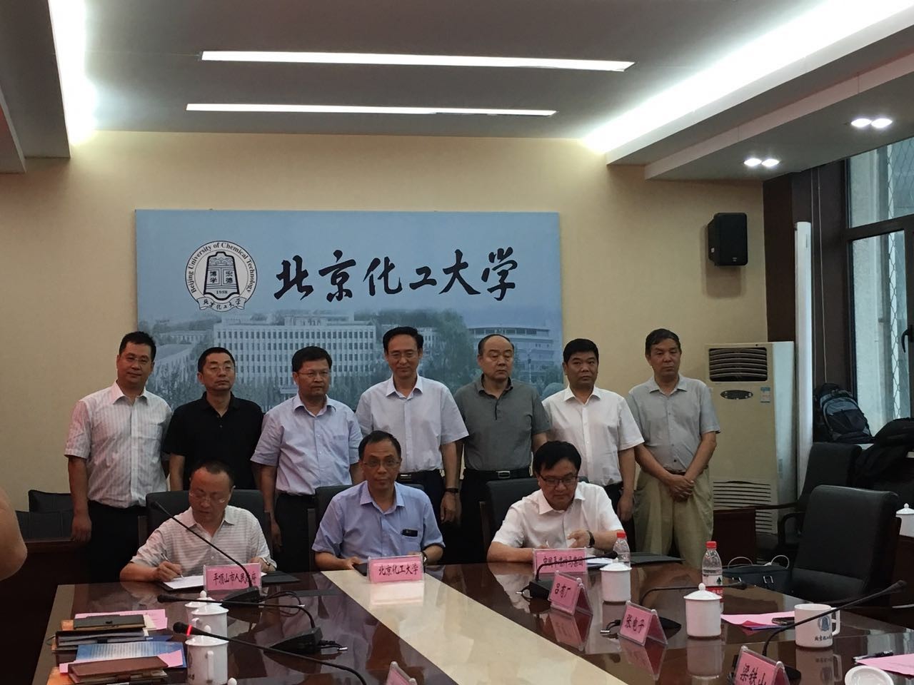 7月20日上午,北京化工大学与平顶山市人民政府、平煤神马集团三方战略合作协议签约仪式在我校行政楼203会议室隆重举行。北京化工大学校长谭天伟、副校长陈标华,平顶山市市长张国伟、平煤神马集团董事长、党委书记梁铁山,平顶山市政协副主席、神马股份总经理张电子以及三方相关部门负责人出席签约仪式。签约仪式由副校长陈标华主持。