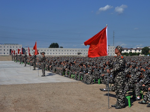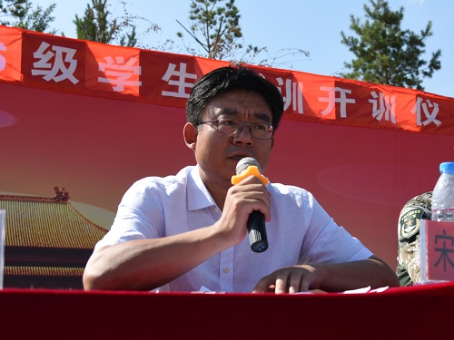 9月3日下午,2016级本科生军训开训仪式在八达岭军训基地举行。校长助理宋来新出席并讲话,军训团团长眭斌少校、学工办主任商云龙、党委组织部副部长崔春花、教务处副处长郑秀英、北区办副主任许利民、武装部部长兼军训团政委丛迪及各学院学生工作负责人承训部队官兵和全体军训团成员参加开训仪式。
