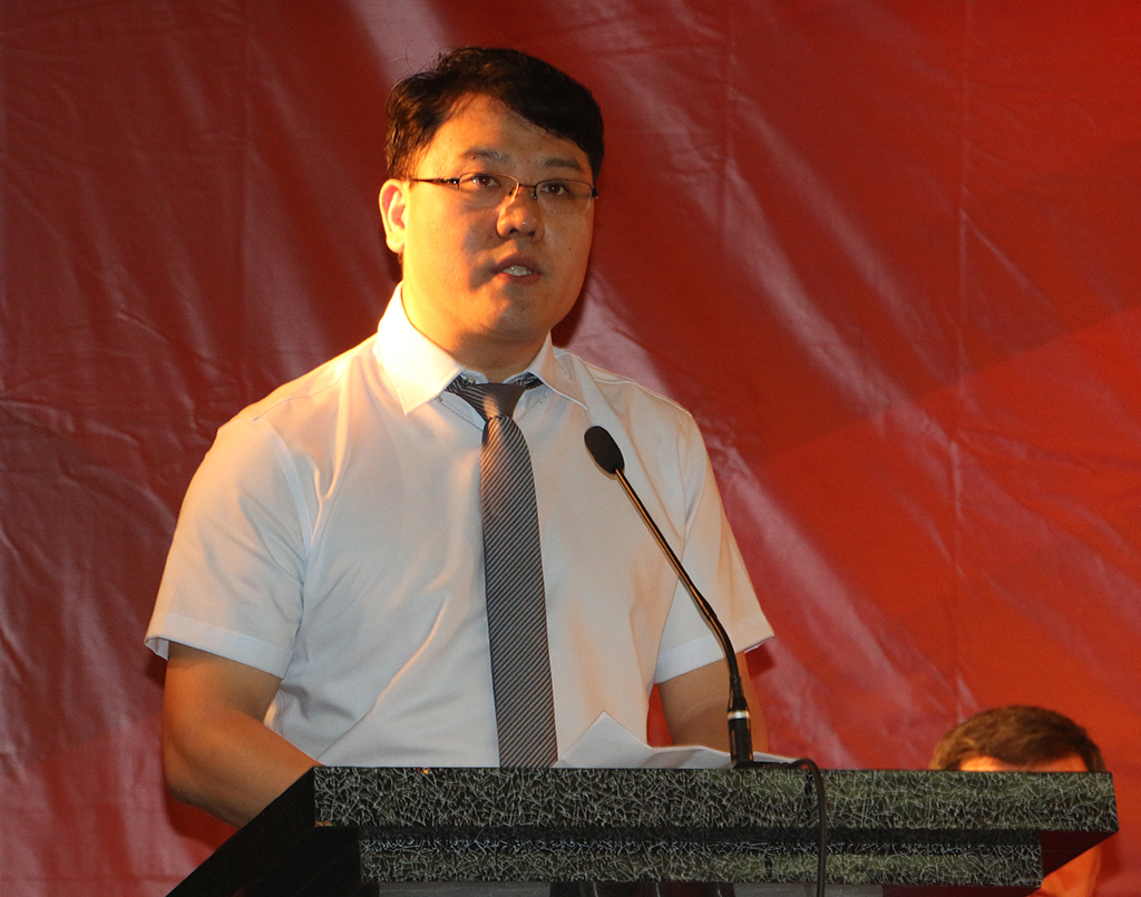 我校优秀校友代表、2008届博士毕业生杨树斌教授作为校友代表发言,他向同学们分享了自己的求学经历和人生感悟,并与全体新生共勉。我校理学院宋宇飞教授代表研究生导师发言,他希望同学们明确定位目标,坚定理想信念,主动学习,夯实基础。典礼上,校研究生会主席秦璇同学代表高年级研究生向2016级全体研究生新生发出倡议,倡议广大研究生以前辈学者为榜样,珍惜时光,努力培养自身广阔视野,自觉担当起国家建设发展重任。化工学院2016级韩先尧同学代表全体新生发言,她表示今后一定努力学习、提高综合能力,与化工大学共同发展,做一名合格的化大人。