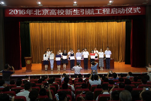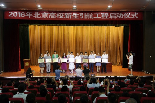 9月9日下午,2016年北京高校新生引航工程启动仪式在我校科学会堂举行。教育部思政司副司长张文斌、北京市委教工委常务副书记张雪、副书记郑登文、北京市教委委员黄侃、北京化工大学校长助理宋来新、北京大学教授韩毓海出席会议并在主席台就坐。北京各高校主管学生工作校领导,学工部长、研工部长,部分高校学生代表参加了会议。