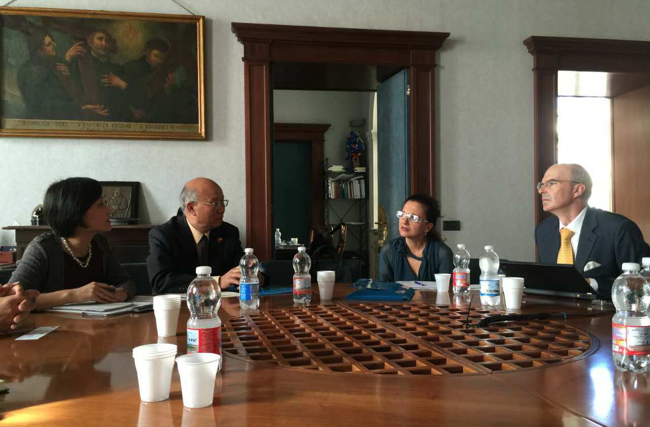 9月4日,代表团向我国驻意大利大使馆教育参赞罗平汇报了我校与意大利高校教育科研合作、合作办学项目的进展以及希望积极开拓境外办学和新建孔子学院等工作设想,得到罗平参赞的充分肯定和支持。