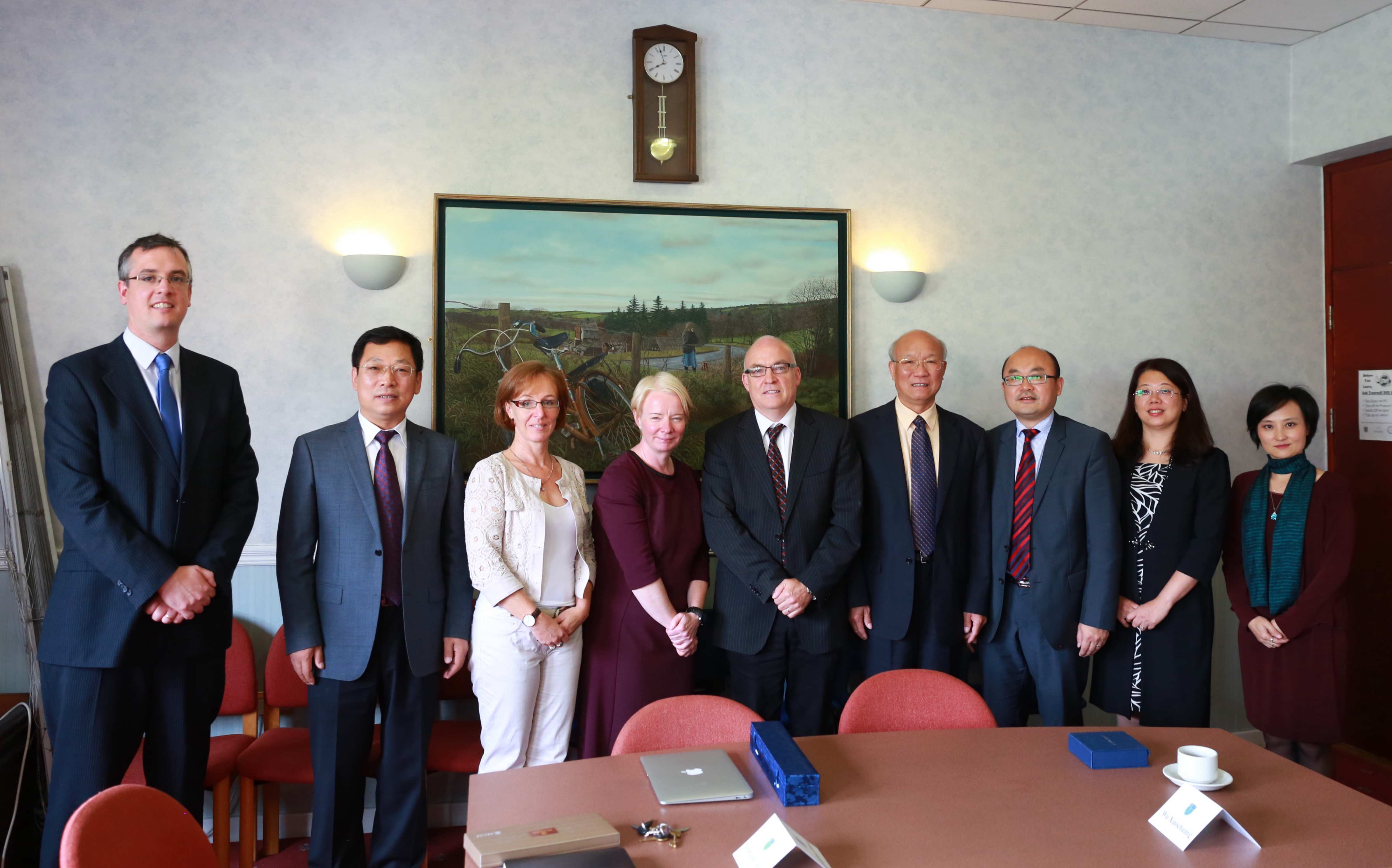 9月7日至8日,代表团访问了爱尔兰都柏林理工学院,与都柏林理工学院副校长Michael Devereux、计算机学院院长Deirdre Lillis、计算机学院副院长Sara Jane Delany、计算机学院院长助理Yupeng Liu 和学习发展部部长Ciaran O’leary,围绕两校拟申请的计算机专业中外合作办学博士研究生项目、教师科研合作、与中外企业合作开拓奖学金资助渠道等问题进行了充分沟通和友好协商并达成多项共识,中国驻爱尔兰大使馆教育组吴晓创先生亦参加了会谈并对两校合作表示充分肯定和支持。校长Brian Norton为代表团详细地介绍了都柏林理工学院新校区建设规划,亲自带领代表团参观了建设中的新校区。新校区贯穿始终的环保理念以及将优秀传统的传承与新时期教育研究发展相融合的设计思路给代表团留下了深刻印象。代表团还与计算机学院副院长Paul Doyle等就引进“Global Classroom”,尝试开展网络选修课程合作等意向进行交流,对方表示愿意为我校学生免费开放部分网络课程。
