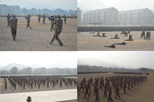 在庄严肃穆的国歌声中,国旗护卫队将五星红旗冉冉升起,阅兵仪式正式开始。校长谭天伟在军训团团长眭斌少校的陪同下,依次检阅受阅方队,并向全体师生致以最亲切的问候。分列式中,各方阵精神饱满、斗志昂扬依次走过主席台,参训学生整齐响亮的口号,坚定有力的步伐,展现了2016级军训团训练的优异成果,充分体现了化大学子团结奋进的精神风貌和顽强坚毅的意志品质。训练科目汇报演示中,参训学生依次表演了军体拳、匕首操、综合格斗术、战术、三声三相等科目,气势恢宏,场面震撼,赢得全场领导和师生阵阵掌声。