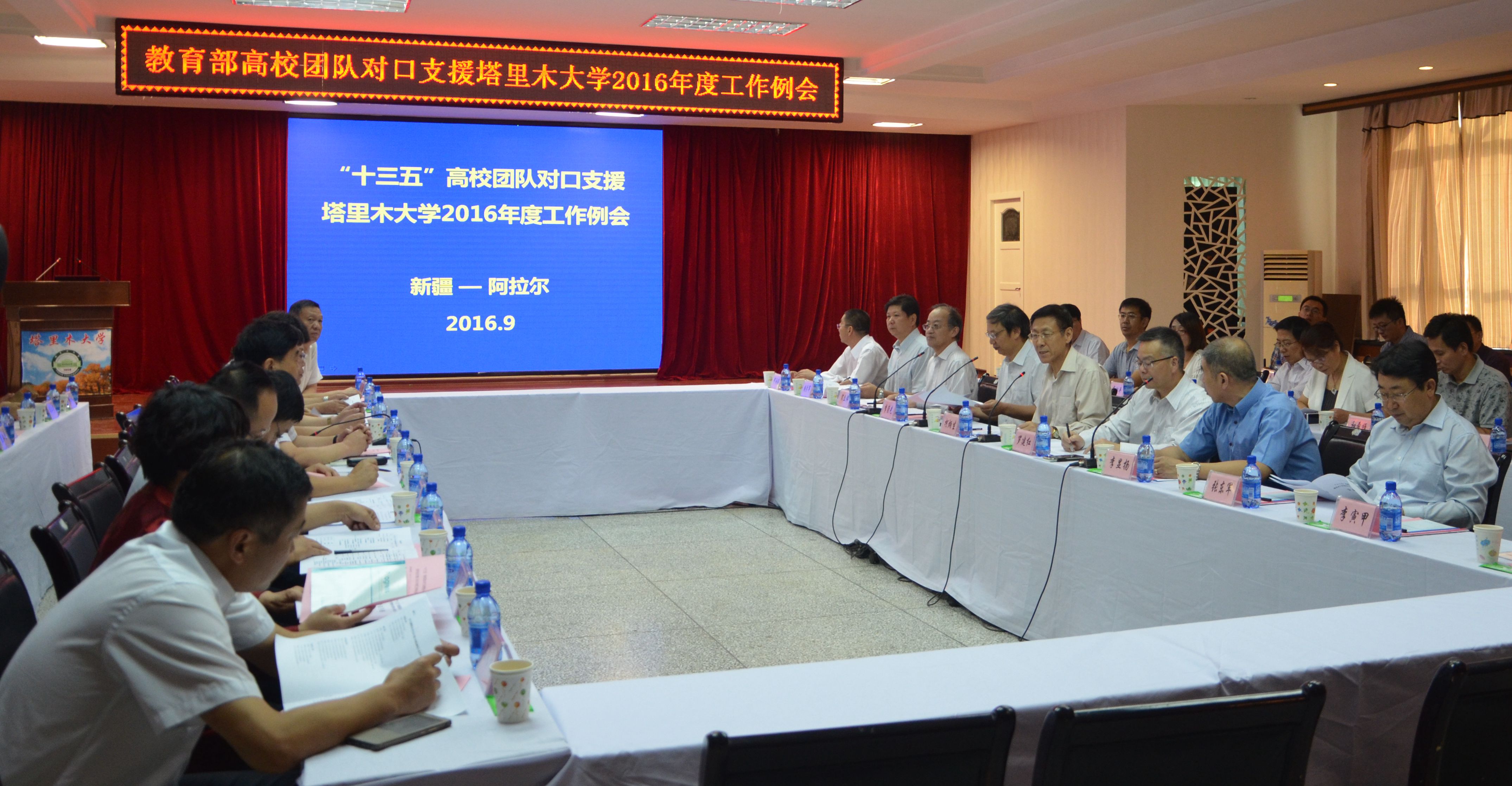 9月22日,教育部高校团队对口支援塔里木大学2016年度工作例会在塔里木大学南疆干部培训中心三楼报告厅召开。中国农业大学、浙江大学、华中农业大学、北京化工大学、东华大学以及塔里木大学的领导专家齐聚一堂,全面总结在“十二五”时期对口支援塔里木大学取得的阶段性成果,并对“十三五”期间教育部高校团队对口支援工作展开了深入研讨。李显扬副校长出席会议。