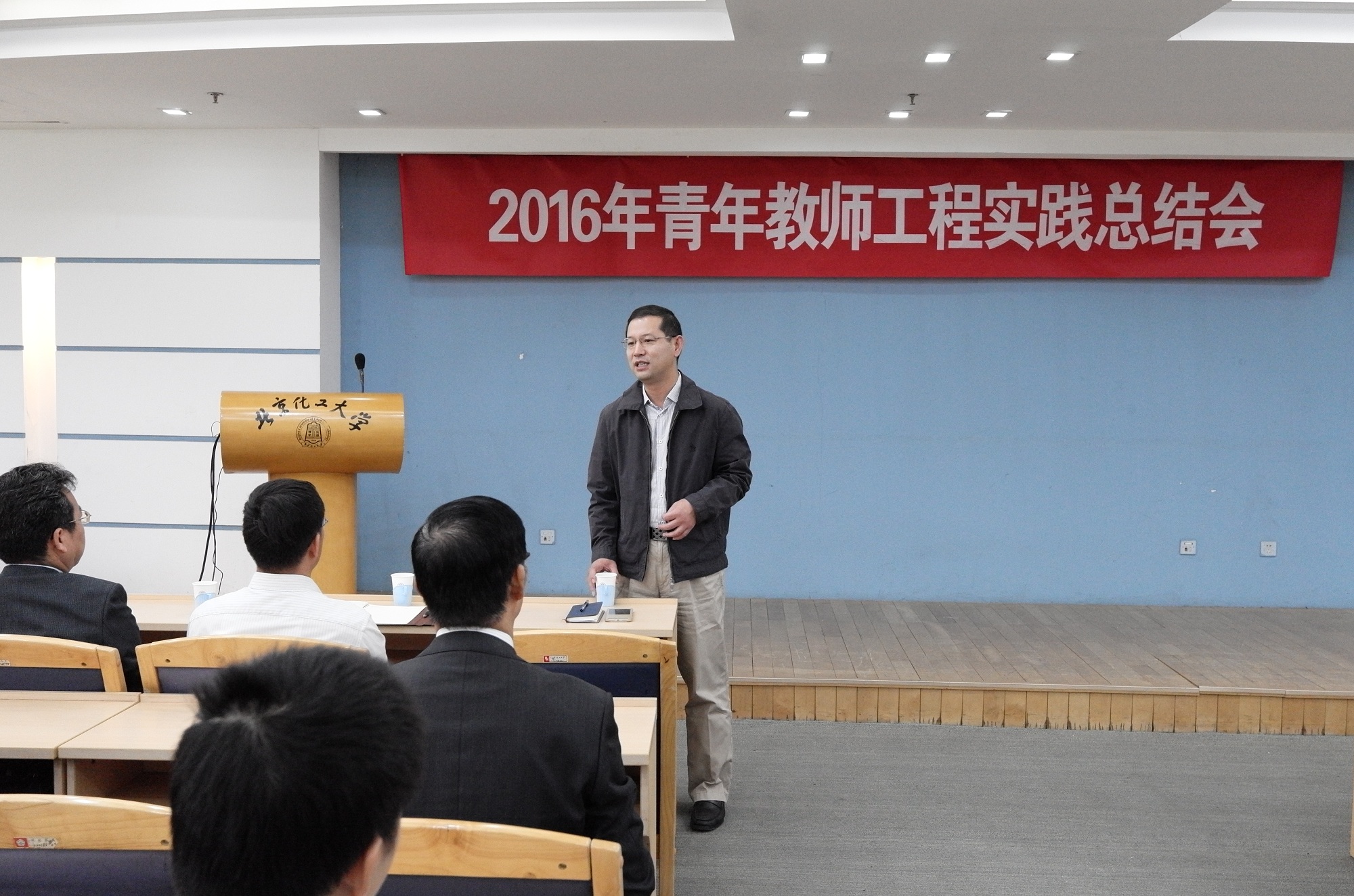 随后,谭天伟校长为在2016年工程实践活动中表现优异的六位团员颁发了“工程实践先进个人”荣誉证书,并作了总结发言。谭校长首先肯定了学校各部门与各实践单位为本次工程实践成功举办所作出的工作与努力。他指出,“十三五”是企业的关键转型阶段,我校作为行业型大学,必须肩负起培养工程创新人才的重任,因而提高教师为国家、为行业、为企业服务的能力对于学校的发展以及青年教师的成长具有重要意义,学校每年开展的工程实践培训,其目的就是要培养青年教师的工程素质以及了解社会和企业需求的能力,同时加强各学院青年教师之间的交流,为学科交叉和科研合作奠定基础。他特别强调文法专业的教师更有必要通过工程实践,将自己的科研与我校优势学科相关联,进行学科交叉,借势发展自身的特色学科,提高文法学院教师服务社会和企业的能力。最后,谭校长向青年教师提出了三点希望;第一,希望青年教师将工程实践概念与素质融入教学与科研中,在科研过程中提高工程意识,培养出具有工程素质的创新人才;第二,希望青年教师能将工程概念、素质转化为服务社会和企业的能力,学校将大力支持青年教师与企业开展的产学研项目;第三,希望青年教师在工程实践活动中结下的友谊成为科研合作的契机,并逐步发展为事业上的合作伙伴。