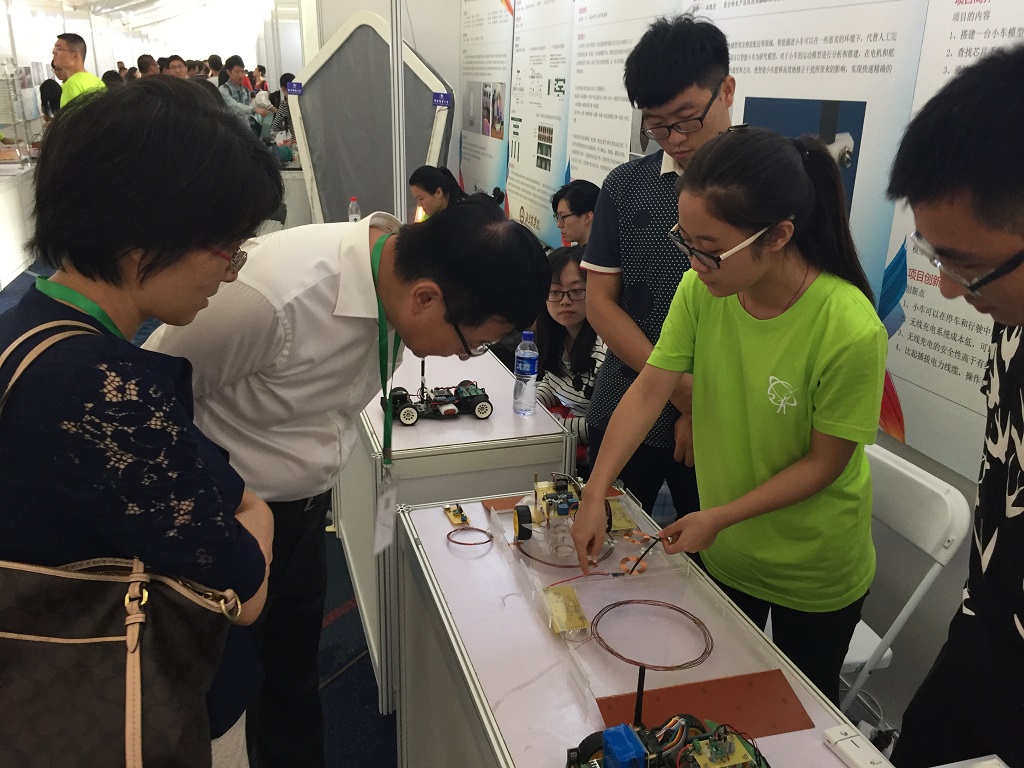 此外,我校作为协办单位承担了学科竞赛互动展区的组织工作,共组织了“飞思卡尔赛车展示区”、“机器人展示交流区”、“戏剧互动体验区”、“书法互动体验区”及“霓裳服装展示区”等五个展区,参观学生在各互动展区既能看到精彩的学科竞赛作品展示,又能亲身体验参与作品创作的快乐,受到参观学生的高度认可。