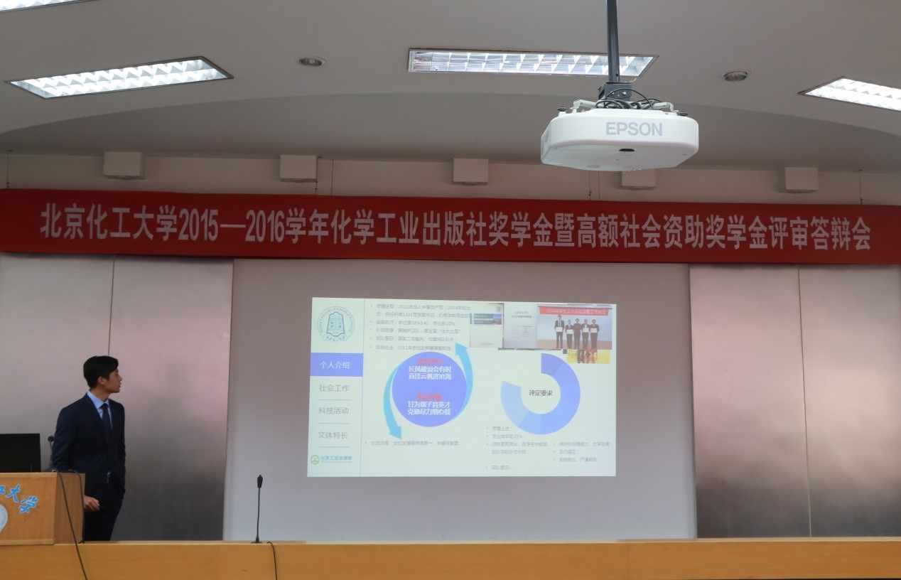 本次社会资助奖学金评审答辩会共评审出“北京化工大学—化学工业出版社奖学金”获奖学生金奖3人、银奖4人,以及“北京化工大学—中国天辰奖学金”高额奖项获奖学生2人。根据学校社会资助奖学金评定文件规定,经学生自主申报、学院审查推荐及校奖学金管理委员会审核,最终确定了24名候选学生参加本次评审答辩会,进行奖项角逐。