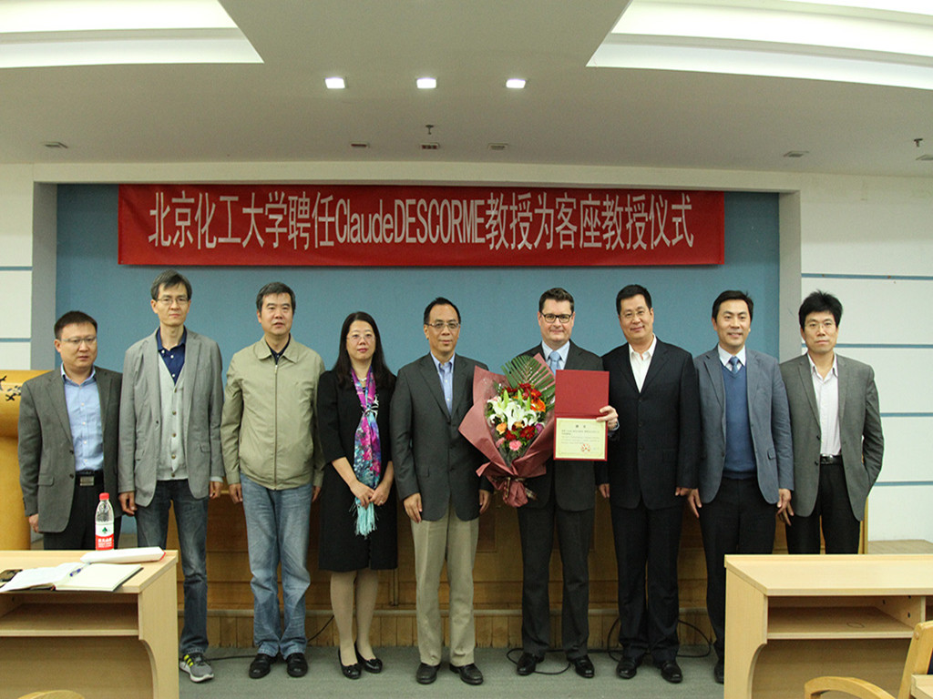 10月10日上午,我校在中心会议室为法国国家科研中心Claude DESCORME教授举行客座教授聘任仪式。出席此次聘任仪式的有北京化工大学副校长陈标华、国际交流与合作处处长毛立新、化学工程学院常务副院长陈晓春、人事处副处长赵春、化学工程学院副院长张润铎。100多名师生参加了聘任仪式。聘任仪式由陈晓春常务副院长主持。