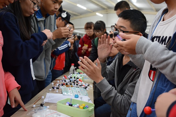 学科体验区:同学们体验分子模型拼装