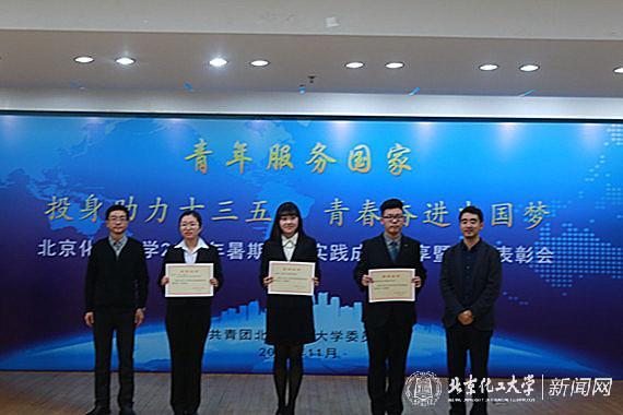 今年,学校以“青年服务国家——投身助力十三五,青春奋进中国梦”为主题,组建242支社会实践团队,共计1600余人次以团队形式、7000余人次以自主形式开展了美丽中国环保科普活动、内蒙古扶贫县接力、化工行业百企调研、老校友寻访等形式多样的实践活动。经过前期展示和现场答辩,最终评选出社会实践金奖团队3支、银奖团队5支、铜奖团队12支及先进个人若干。