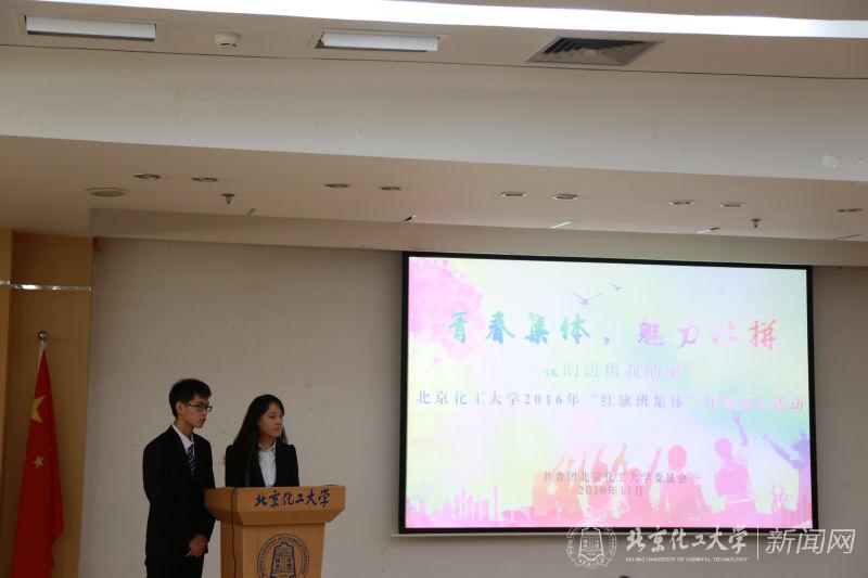 为推进高校学生基层组织建设、展示我校学生积极向上的精神风貌,11月7日晚,北京化工大学2015-2016学年红旗班集体评选答辩会在多功能厅举行。北京市教工委宣教处副处长寇红江、团市委大学部副部长郭昊、校团委书记丁贞栋,各学院团委书记、辅导员、学生代表参加本次评选答辩会并担任评委。
