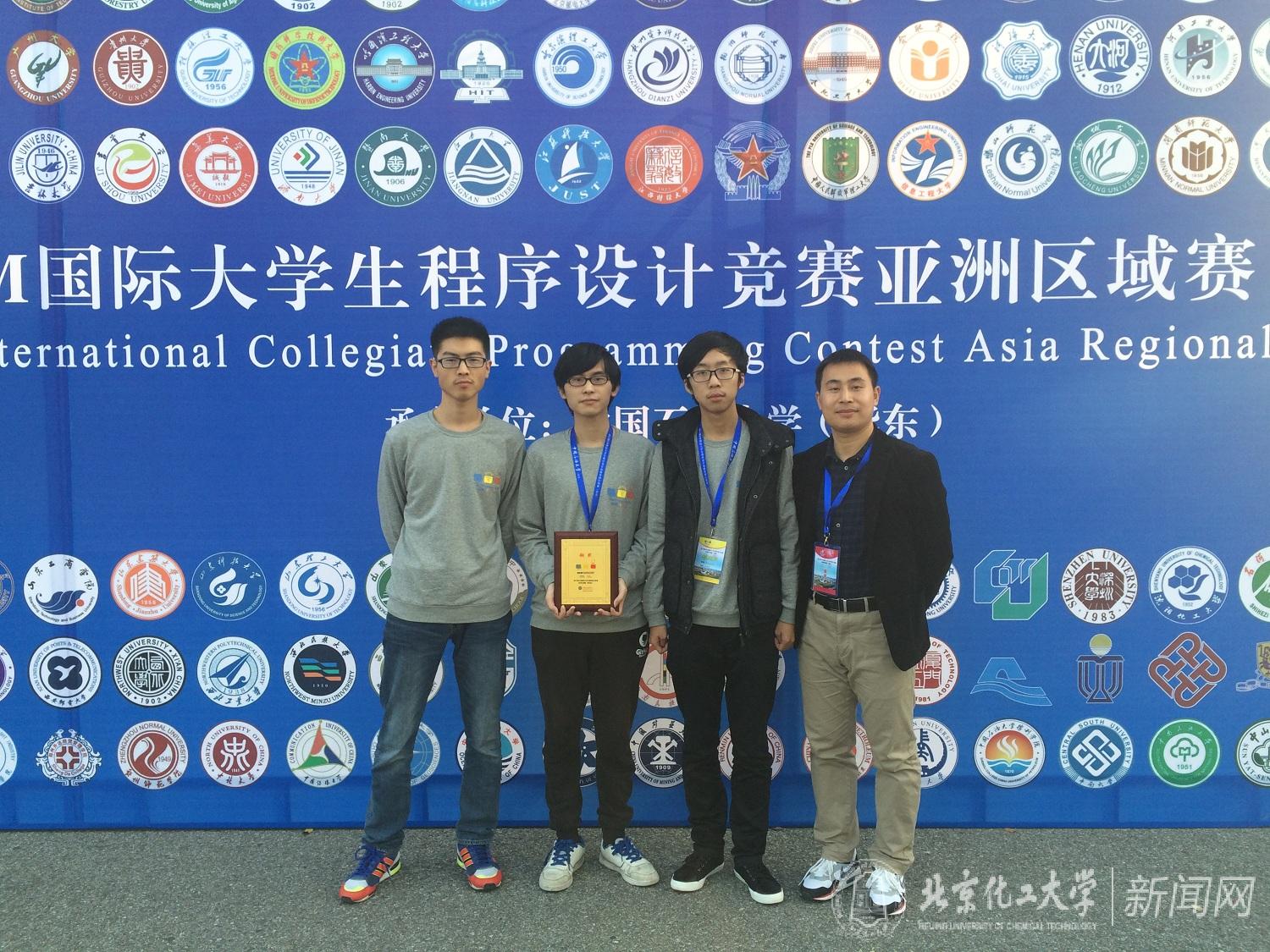 11月12日至13日,第41届ACM-ICPC国际大学生程序设计竞赛亚洲区青岛赛区现场赛在中国石油大学(华东)举行。由刘勇老师带领的我校信息学院计算机系学生张益宁、钟鹏、陆泽欣三人组成的北京化工大学ACM代表队,在5个小时的比赛中发挥出色,最终获得铜牌。