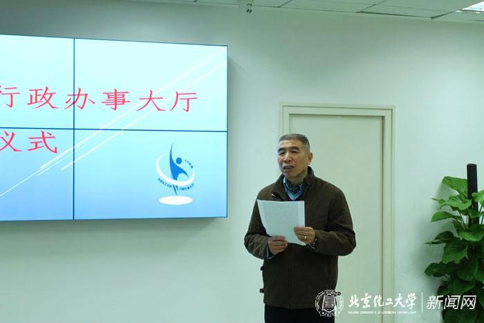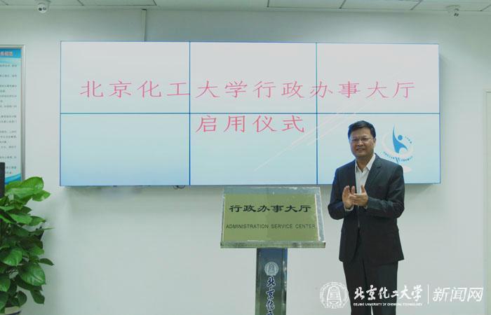 在与会人员观看行政办事大厅宣传视频之后,谭天伟校长为行政办事大厅揭牌,行政办事大厅正式启用。