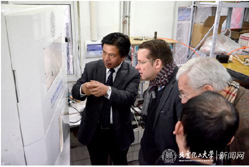 会后,Hopmann教授一行参观了高分子材料先进制造(英蓝)实验室并与研究室教师进行了详细的交流。国际交流与合作处王永生副处长介绍了我校近年来与国外高校的科研合作情况,谢鹏程教授主持介绍了英蓝团队近年来的研究工作及成果,鉴冉冉博士做了国家自然科学基金课题《场协同强化传热螺杆》的研究进展汇报。Hopmann教授一行在英蓝实验室参观时,对团队开展熔体微分静电纺丝、熔体微分3D打印及微分注射成型等研究工作高度赞赏,双方就未来在教师互访、人才联合培养以及国际科研合作方面达成了合作意向。