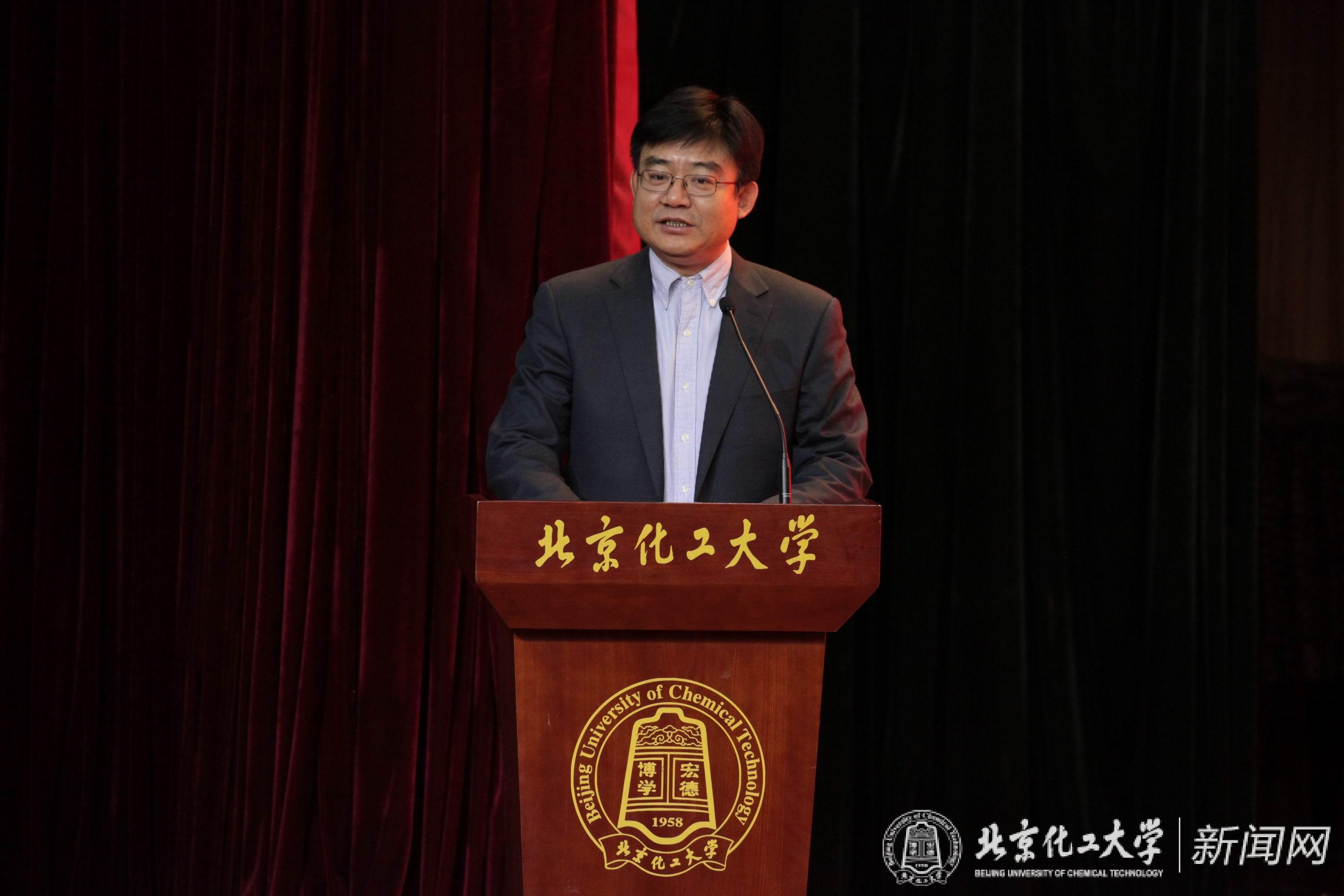 校长助理宋来新讲话。他对设奖单位和个人表示衷心的感谢,充分肯定了材料学院的奖助育人工作,高度赞扬了张立群教授等为代表的广大教师,感谢他们对学生的无私奉献。他对同学们提出三点希望,希望同学们开拓创新,追求卓越;心怀感恩,无私奉献;志存高远,心系祖国。随后,与会领导和嘉宾上台合影留念。