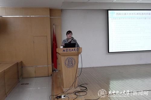 下午,西南交通大学郝莉教授以“实施以学为中心的课程评估推动课程教学改革,为学生创造有意义的学习经历”为主题,通过提出问题,引发思考的方式阐述了如何实现“以学为中心”的工程教育课程改革。郝莉老师首先提出本科课程教学改革的四个方向,即实现通识教育与专业教育融合、推动跨学科教学、开展以学习为中心的教学设计以及建立基于学习成果的课程质量保障体系。其次,她探讨了如何推动教学改革,提出教师教学愿景与现实差距是课程教学改革最重要动力,并指出这正是课程评估最为重要的意义和价值,即通过“以学为中心”的课程评估,帮助教师实现卓越教学的梦想。最后,郝老师介绍了西南交通大学如何通过推动混合式教学、跨学科课程建设、学生写作能力培养、重构教学保障质量体系等来探索工程教育课程改革的实践,并重点介绍了西南交通大学开展课程评估的目标、原则、五个评估域以及质量保障文件体系,基于信息化平台的课程评估流程以及两个学期评估结果和对课程评估进行的反思。与会教师认为,西南交通大学在教学改革上的深入研究以及在课程改革上的实践给我校教师和教学管理人员带来了有益的借鉴和思考。